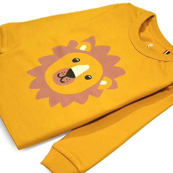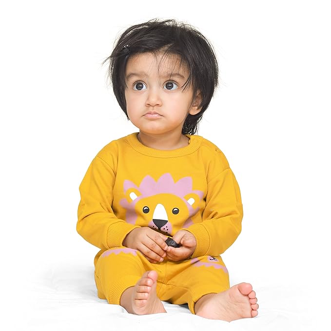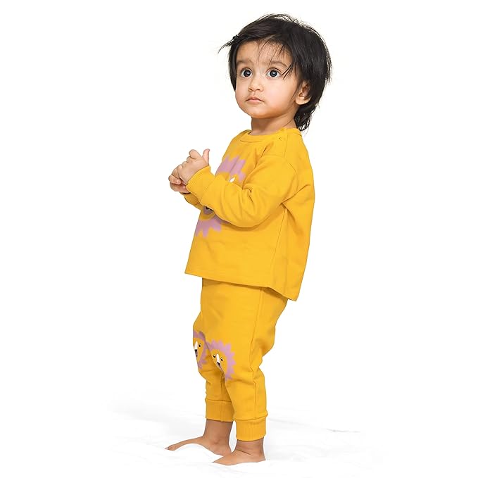 This set includes a full-sleeve sweatshirt and matching track pants, both crafted with a comfortable fit that allows easy movement. The elastic waistband ensures a secure yet gentle hold, while the breathable fabric keeps kids comfortable without overheating.